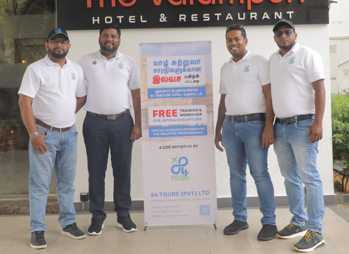 In a bid to uplift the local tourism sector, 84 Tours an inbound tourism company founded by a group of friends born in 1984 to position Sri Lanka as a hub for international travel, recently implemented a Corporate Social Responsibility (CSR) project aimed at enhancing the professionalism of tourist drivers in the Northern Province. The event was held at Hotel Valampuri.