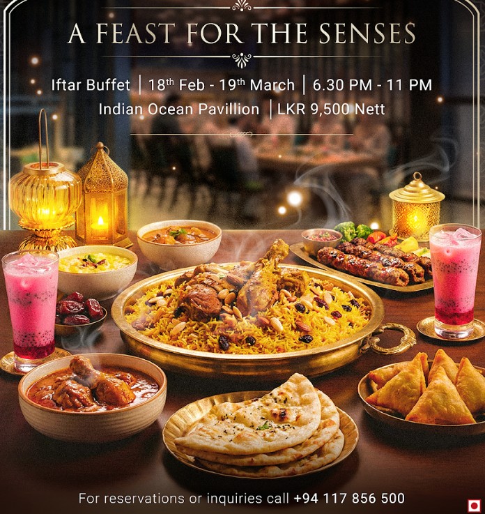This Ramadan, ITC Ratnadipa invites guests to celebrate the holy month with ‘A Feast for the Senses,’ a lavish Iftar buffet at the Indian Ocean Pavilion, available from 18 February to 19 March between 6:00 p.m. and 11:00 p.m. each evening, at LKR 9,500 nett per person. This specially curated dining experience offers an elevated setting for families, friends and colleagues to break their fast together and reflect on the spirit of the season.